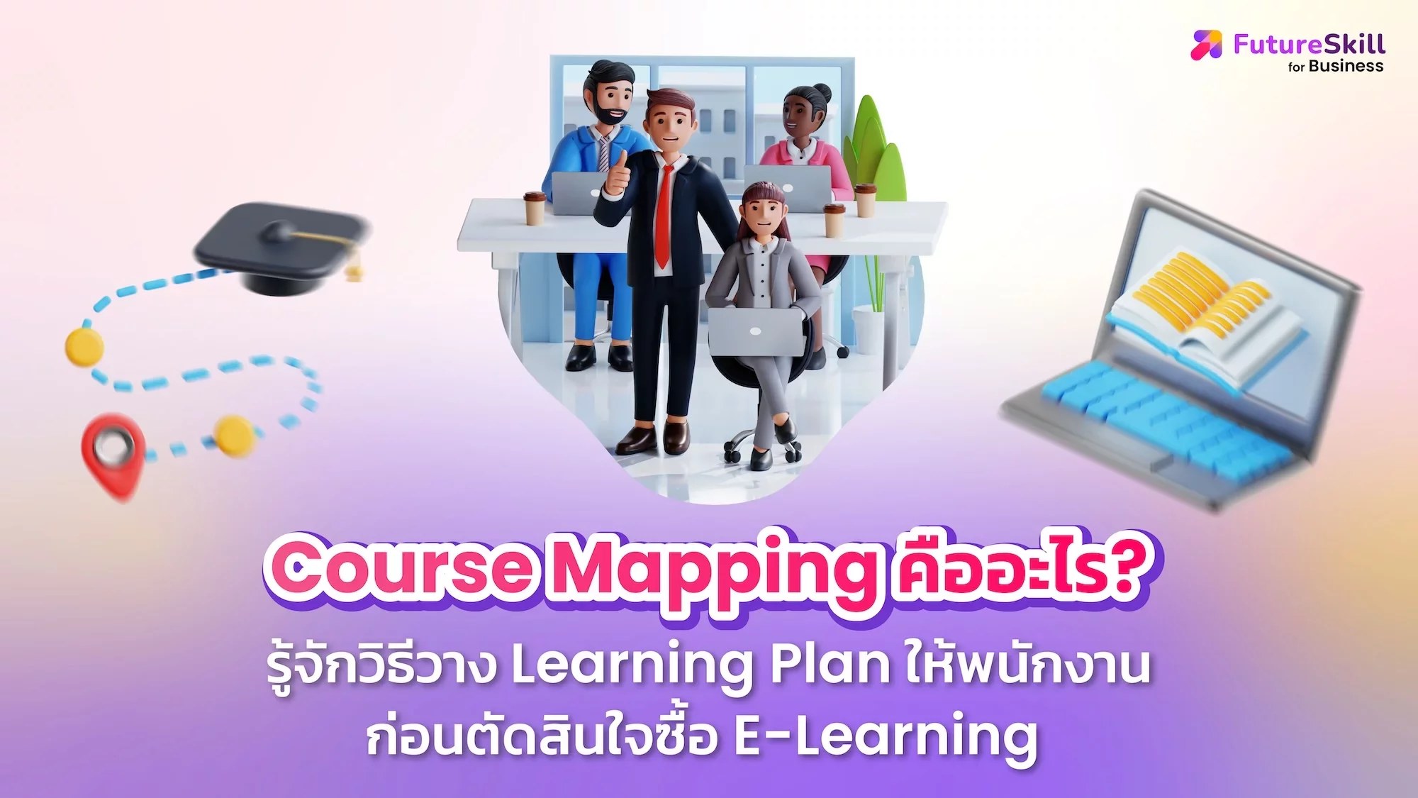 ทีม L&D ของ FutureSkill for Business สามารถช่วยวิเคราะห์ Competency และจัดทำ Course Mapping ให้กับองค์กร เพื่อให้ HR เห็นภาพ Learning Plan ก่อนตัดสินใจลงทุนใน E-Learning